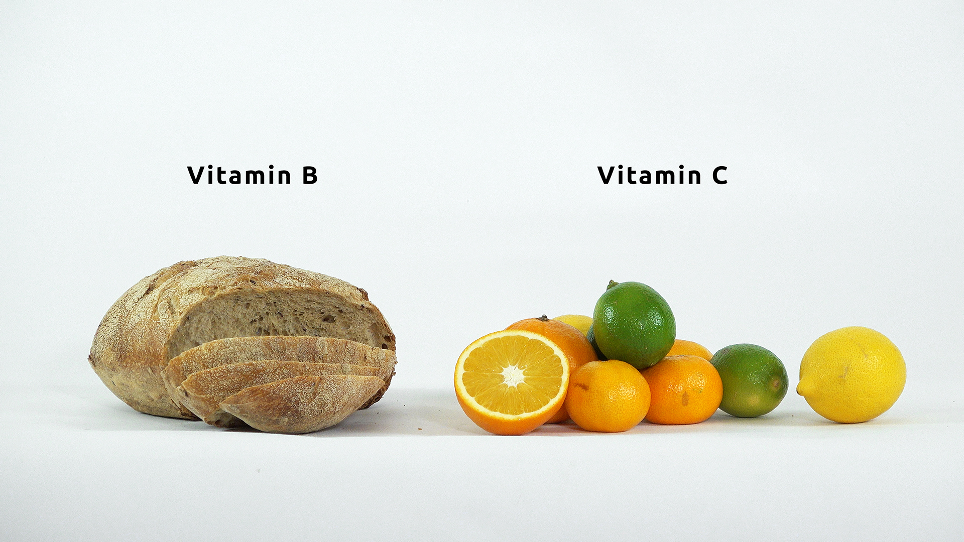 De vattenlösliga vitaminerna lagras inte i kroppen. Vi måste alltså regelbundet få i oss dem via maten. Om du skulle försöka bygga upp ett överskott av C-vitamin genom att äta väldigt C-vitaminrik mat och ta vitamintillskott så skulle det inte fungera. Du skulle kissa ut allt som kroppen för tillfället inte behöver. Undantaget bland de vattenlösliga vitaminerna är vitamin B12 som kan lagras i levern under flera månaders tid. Vitamin B12 behövs bland annat för att vi ska kunna bilda röda blodkroppar och för att nervcellerna ska kunna skicka signaler mellan varandra på ett effektivt sätt. C-vitamin behövs för att bygga upp brosk och ben. Det är också med i bildningen av gallsalter och hormonet kortisol. Vitaminet är dessutom en antioxidant. Sådana ämnen neutraliserar fria radikaler. Fria radikaler är reaktiva kemiska ämnen som kan orsaka mutationer på DNA. Fria radikaler kan bildas av för mycket solstrålning men de kan också bildas naturligt då syre omsätts i kroppen. C-vitamin underlättar också upptaget av järn från maten. Det är ovanligt med C-vitaminbrist i Sverige idag. För länge sedan var det inte lika ovanligt. Brist på C-vitamin kan leda till en sjukdom som heter skörbjugg. Skörbjugg leder till blödande och inflammerat tandkött, sämre sårläkning och ökad känslighet för infektioner. Små mängder av mineraler behövs för att kroppen ska fungera