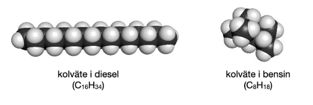 Fossila och förnybara bränslenOm du går längst bak i en buss så bullrar det ganska mycket. Det är där motorn sitter. Inne i motorn sker kemiska reaktioner när bränslet under högt tryck förbränns i närvaro av syre. Förbränningen sker explosionsartat. Det som förbränns är någon form av kolväte och det som bildas vid förbränningen är framförallt koldioxid och vattenånga. Eftersom de bildade ämnena är gasformiga och tar större plats än bränslet och luften så sker en utvidgning, en expansion. Det är denna expansion som får kolven att röra sig i motorn och bussen att rulla.