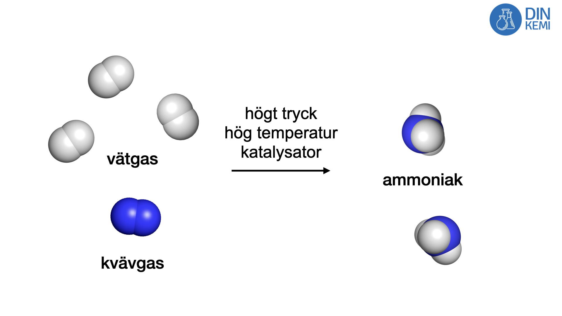 Industriella katalysatorer är viktiga för samhälletKatalys är oerhört viktigt i industriella tillämpningar för att framställa molekyler och material som behövs i det moderna samhället. En uppskattning är att katalys direkt eller indirekt bidrar till ungefär 35 % av världens samlade BNP. Ett exempel på industriprocesser som använder katalys är den så kallade Haber-Boschprocessen. I Haber-Boschprocessen omvandlas kvävgas och vätgas till ammoniak under högt tryck med hjälp av en järnbaserad katalysator. Ammoniak utgör huvudbeståndsdelen i konstgödning. Konstgödning är basen för mycket av vår matproduktion. Du äter alltså alltid mat som innehåller kväveatomer som kommer från Haber-Boschprocessen. En uppskattning är att 40 % av kväveatomerna i din kropp kommer från insidan av en Haber-Boschreaktor. Kväveatomerna finns framförallt i proteiner och DNA.