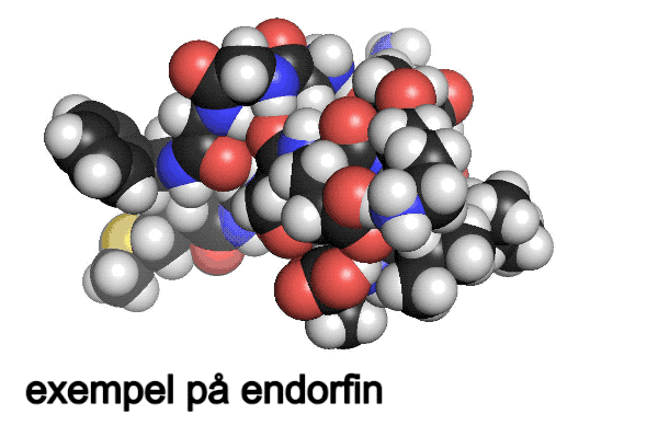 De här receptorerna ska egentligen binda till kroppens egna substanser. Dessa ämnen brukar kallas för kroppens eget morfin, eller endorfiner. Endorfiner är peptider och består alltså av aminosyror. Endorfiner frisätts i hjärnan när vi gör något vi tycker om att göra och när de binder till opioidreceptorerna känner vi en känsla av lycka och tillfredsställelse. Endorfiner frisätts till exempel när vi är tillsammans med någon vi tycker om men också när vi tränar. Det gör att vissa känner ett starkt behov av att träna.