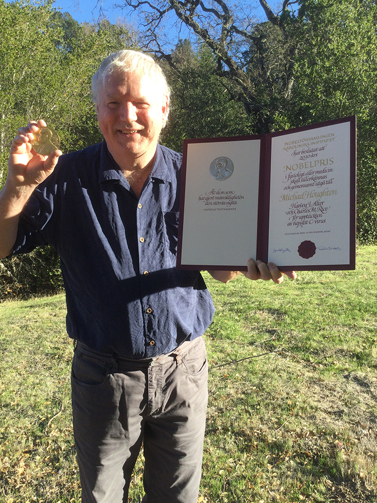 Michael HoughtonNobelpris i fysiologi eller medicin 2020: "för upptäckten av hepatit C-virus" Sir Michael Houghton (1949-) föddes i Storbrittanien. Han är virolog och forskare. Hepatit är en grupp sjukdomar som innebär inflammation i levern. Hepatit kan orsakas av olika virus som överförs via blod. På 1970-talet var två typer av hepatit, A och B, kända. Genom studier av personer som fått blodtransfusioner kunde Harvey Alter och hans medarbetare då visa att det även fanns ett tidigare okänt smittämne som överförde sjukdomen. De kunde också visa att det rörde sig om ett virus. Resultaten var ett första steg mot utveckling av blodtester och nya läkemedel som har räddat miljontals människoliv.